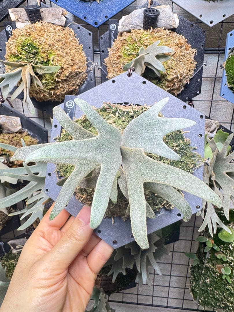 ※親株は購入後すぐに成長点が死んでしまいました。商品は死ぬ前に出ていた子株達の一つです。 写真8は親株が死んだ後の群生状態の写真です。※写真の背景を白に変えており、所々板や手が消えております。気になる方はメッセージ頂きましたら写真アップし直します。※ポットで約1年養生した子株をコルク付けして貯水葉ターンが終わり、ただいま胞子葉が元気に成長中です。※ご質問には出来る限りご対応したいと思っております。※タグは付属致しません。ご了承下さい。※素人撮影ですので、実物は色見が変わる場合もございますのでご了承下さい発送方法・送料・メルカリ便(発送方法は選択できませんのでご了承下さいませ)・送料無料(送料込)その他見落としがないよう注意をし商品の説明をしようと心がけていますが素人出品ですので神経質な方のご利用はご遠慮お願いします。トラブルを避ける為、返品クレームはお断り願いたいので質問等ございましたら購入前にご質問下さい。。ぽ様 リクエスト 3点 まとめ商品。ビカクシダ willinckii mix spore Predator, SPA,Kai 2。willinckii copper will × veitchii 2nd 脇芽。亮二様確認用。Y*s様 ◆ P.Willinckii ‘OMG’ spore(O-009)。willinckii cv predator pup ビカクシダ。ゲリラ値下げ大株ビカクシダ ウィリンキーwild\"east java\"。ビカクシダ P.willinckii Golden boy spore 金童。ビカクシダ willinckii waltz pup。ビカクシダ 流木付。【平凡之鹿】ビカクシダ YMDS Totoro HHRナーセリータグ付け【板付レビュー